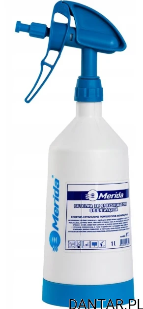 Butelka pusta ze spryskiwaczem spieniającym Merida BT3 o pojemności 1 litra to praktyczne i niezawodne narzędzie do aplikacji piany oraz innych płynów czyszczących i kosmetycznych. Wykonana z trwałego, wysokiej jakości tworzywa, wyposażona w precyzyjny, spieniający spryskiwacz, który pozwala uzyskać gęstą, równomierną pianę. Butelka jest wyskalowana, co ułatwia kontrolę ilości używanego środka. Idealna do pracy w gospodarstwach domowych, warsztatach, salonach samochodowych lub ogrodnictwie.