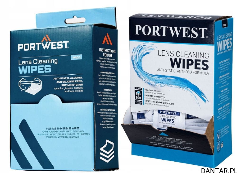 Chusteczki do okularów PA01 Portwest a100 to niezawodne rozwiązanie do precyzyjnego czyszczenia soczewek ochronnych i okularów, idealne dla pracowników przemysłu, warsztatów i laboratoriów. Produkt zapewnia krystaliczną czystość bez smug i zarysowań, dzięki formule antystatycznej i antyparowej.