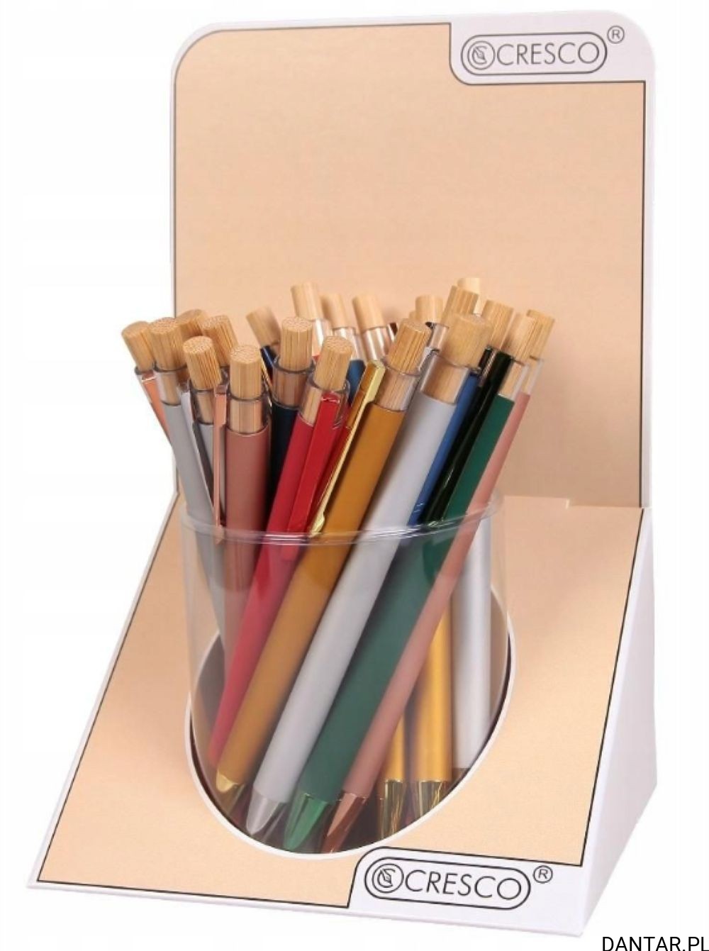 Długopis Dyplomat DPY mix kolor Cresco to elegancki, metalowy długopis automatyczny renomowanej marki Cresco, idealny do biura, szkoły lub jako stylowy prezent. Produkt wyróżnia się mixem kolorystycznym korpusu (m.in. czerwień, niebieski, srebro, złoto), zapewniającym różnorodność i nowoczesny design, z wymiennym wkładem tuszu typu Zenith dla płynnego pisania.