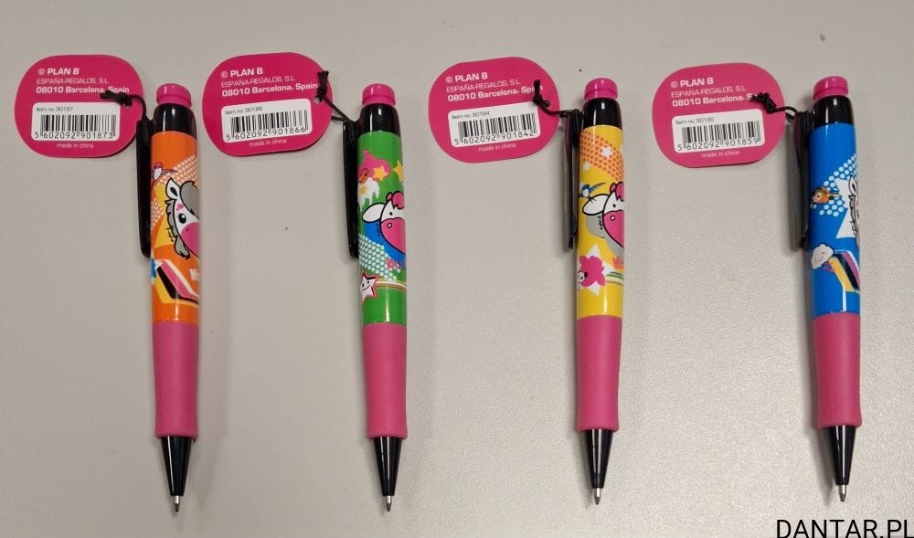 Długopis krówki Miss Makiato w zestawie 12 sztuk (4 kolory obudowy, po 3 sztuki każdego) to wielofunkcyjny gadżet biurowy, idealny do notatek, podkreśleń i kreatywnego pisania.
