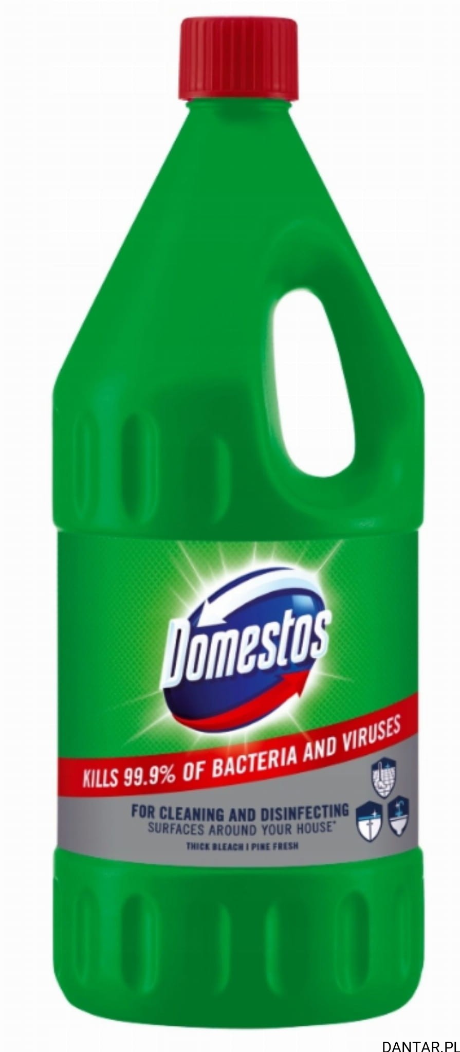 Domestos 2l zielony to skuteczny, antybakteryjny żel do WC o sosnowym zapachu Pine Fresh, idealny do profesjonalnego czyszczenia muszli klozetowej w domu, biurze czy obiekcie HoReCa.
