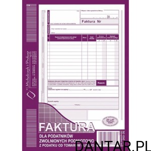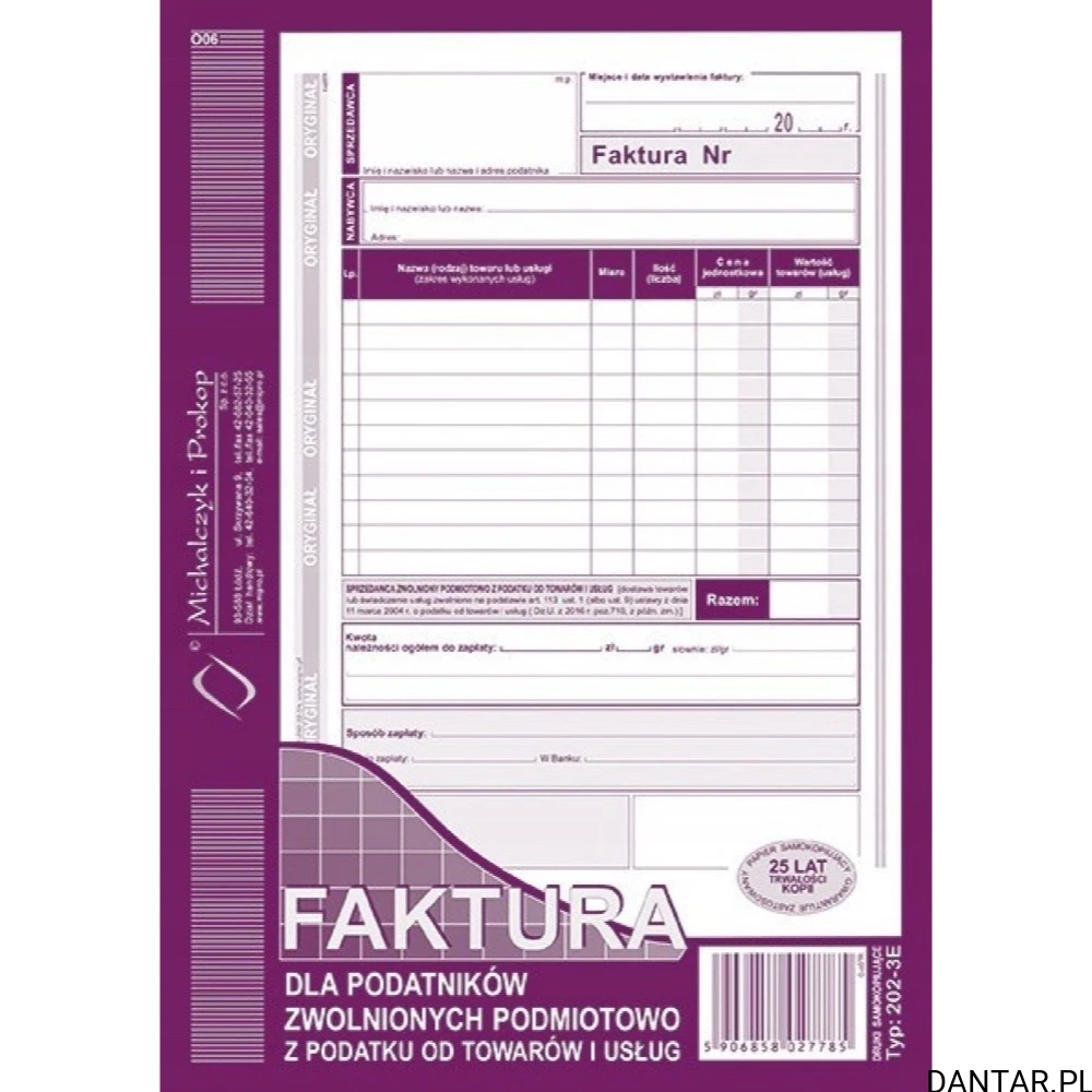 Druk faktura A5 202-3E — bloczek dla podatników zwolnionych z VAT