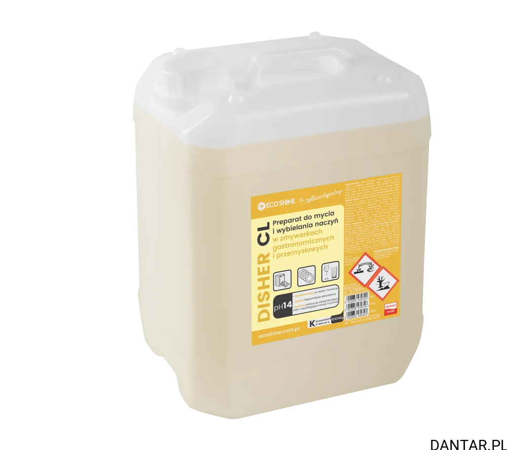 Eco Shine DISHER CL 24kg to niezawodne rozwiązanie dla profesjonalistów, którzy poszukują skutecznego środka do maszynowego mycia i wybielania naczyń w gastronomii z dbałością o ochronę sprzętu i doskonałe efekty czystości.