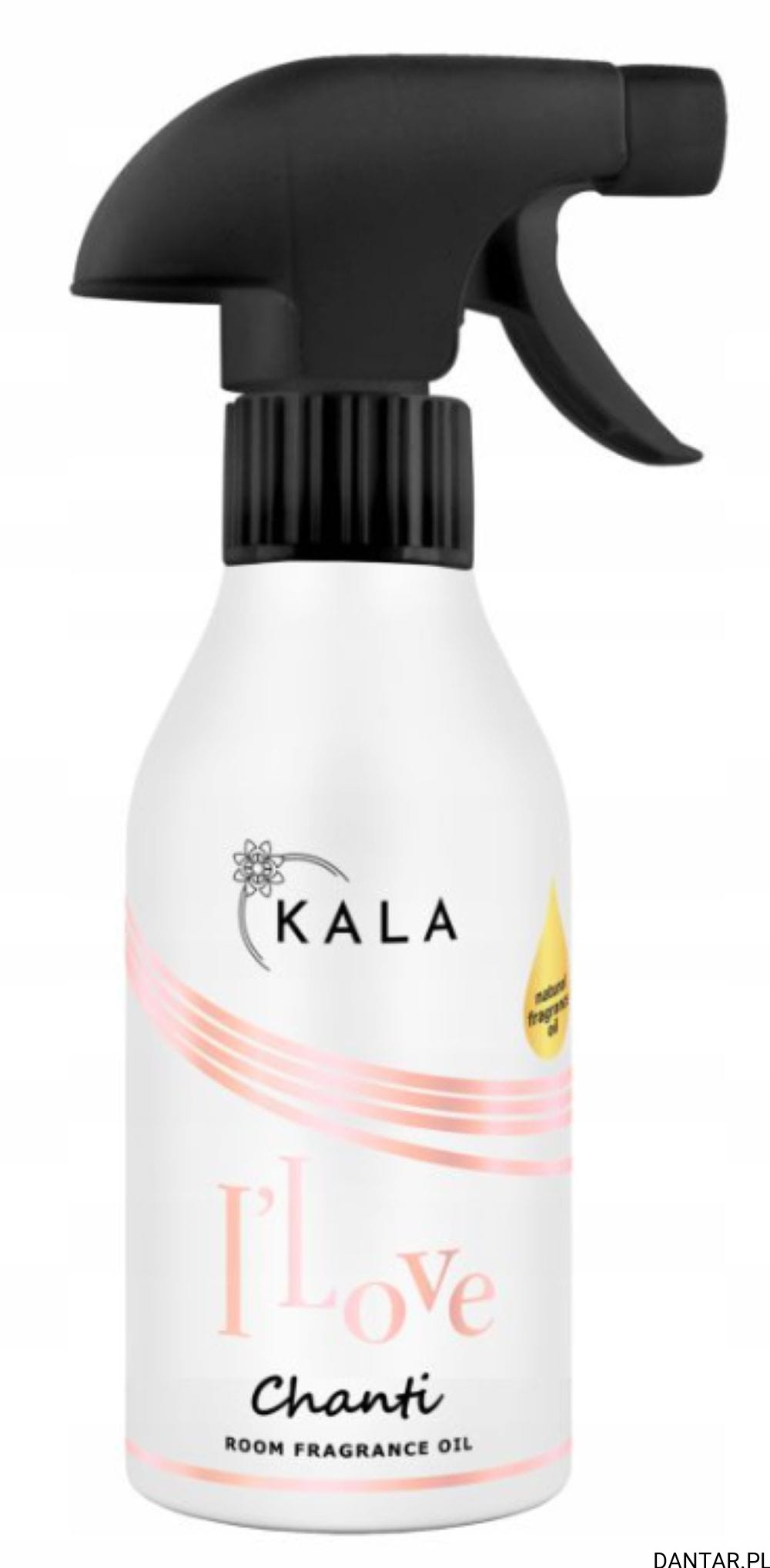 Olejek zapachowy Kala Chanti I'Love 250ml to profesjonalny spray na bazie francuskich perfum z Grasse, skutecznie neutralizujący nieprzyjemne zapachy w pomieszczeniach. Jego zmysłowa kompozycja z nutami róży damasceńskiej, arabskiego jaśminu i tuberozy tworzy atmosferę elegancji i pierwszej miłości, idealną do hoteli, biur czy domów. Ten produkt łączy aromatyczną intensywność z praktycznym działaniem, zapewniając długotrwały efekt świeżości.