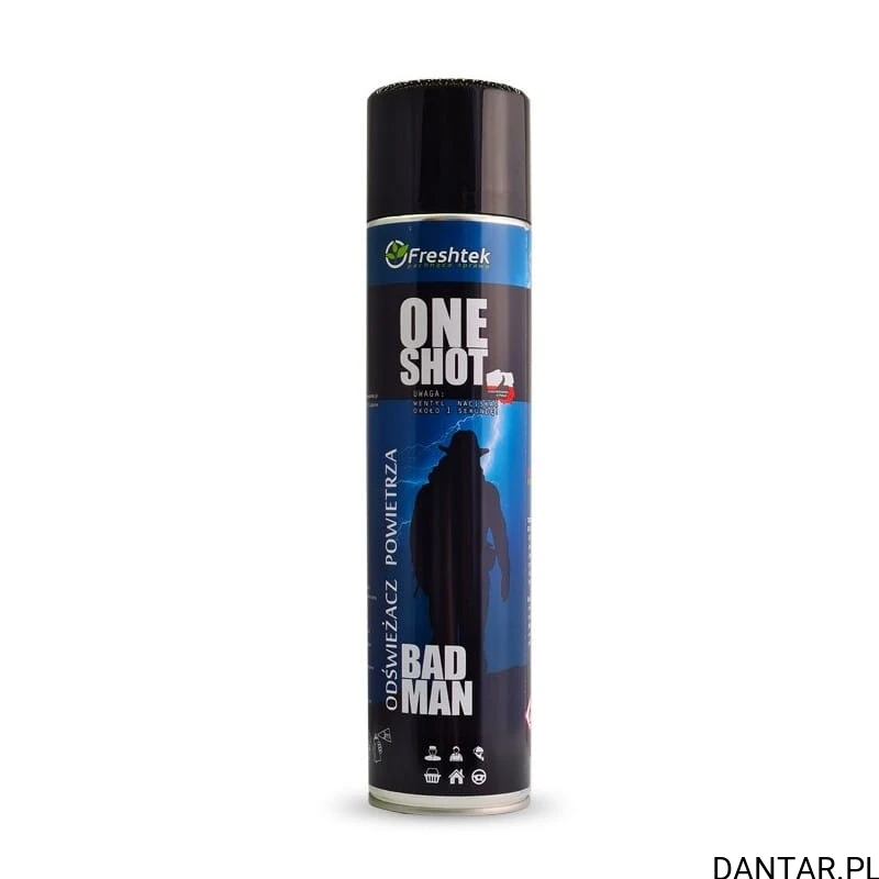 Freshtek ONE SHOT Bad Man to skuteczny neutralizator zapachów w sprayu, który szybko eliminuje intensywne i nieprzyjemne wonie, pozostawiając mocny, męski aromat. Dzięki unikalnej formule neutralizującej zapachy u źródła, produkt zapewnia długotrwałą świeżość i komfort w każdym pomieszczeniu.