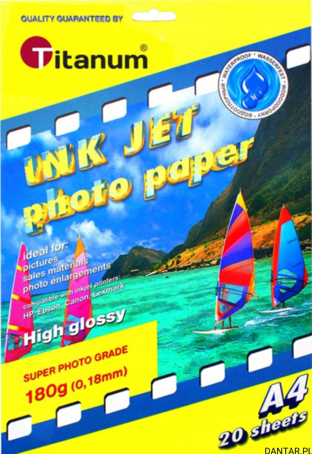 Papier fotograficzny błyszczący Titanum A4 20 arkuszy to wysokiej jakości papier dedykowany do drukarek atramentowych, idealny do wydruków zdjęć o intensywnych, żywych kolorach i doskonałej ostrości. Jego powierzchnia jest błyszcząca, co zapewnia efekt profesjonalnego połysku, podkreślając detale i kontrasty fotografii.