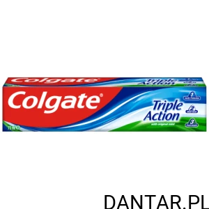 Colgate Triple Action to pasta dedykowana do codziennego stosowania, wspierająca ochronę jamy ustnej na trzech poziomach: przeciwdziała próchnicy, redukuje przebarwienia, przywracając naturalną biel zębów, oraz odświeża oddech na długo dzięki miętowym nutom. Pasta oczyszcza skutecznie zęby i dziąsła z zanieczyszczeń, wspierając zdrowy i estetyczny uśmiech. Zaleca się szczotkowanie zębów 2-3 razy dziennie oraz stosowanie miękkiej szczoteczki.