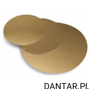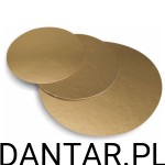 Cienki podkład pod tort złoto-biały śr. 16cm, tektura 1050g z powłoką tłuszczoodporną. Cena za 1 sztukę. Do kontaktu z żywnością. Gładkie krawędzie.
