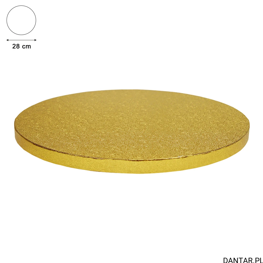 Złoty podkład angielski o średnicy 28cm zapewnia stabilną, sztywną podstawę pod torty dekoracyjne i piętrowe. Grubsza konstrukcja nie ugina się pod ciężarem kremu i masy cukrowej — tort wygląda profesjonalnie od wyjęcia z lodówki po postawienie na stole.