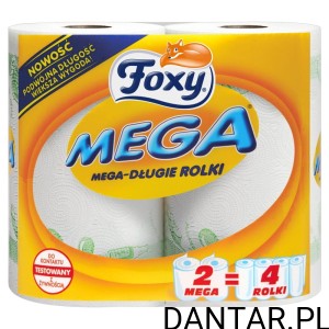 Dwie rolki ręcznika Foxy Mega odpowiadają 4 rolkom standardowego ręcznika.