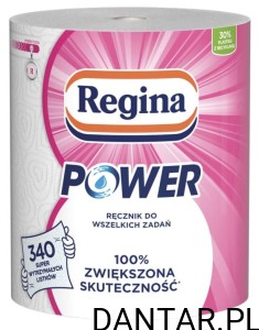 -Regina Power to dwuwarstwowy ręcznik papierowy, który wyróżnia się 340 listkami w rolce. -6szt w opakowaniu zbiorczym.