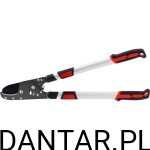 Sekator do gałęzi Yato YT-88299 jest narzędziem do cięcia grubszych, suchych i twardszych gałęzi, gdy zwykły sekator ręczny wymaga zbyt dużej siły. Mechanizm zapadkowy zwiększa nacisk etapami, dzięki czemu praca jest spokojniejsza i bardziej kontrolowana. Teleskopowe uchwyty pozwalają regulować długość od 660 do 910 mm, więc łatwiej dosięgnąć wyższej gałęzi albo pracować z większą dźwignią. Ostrze SK5 z powłoką PTFE ogranicza tarcie i pomaga utrzymać płynne cięcie.