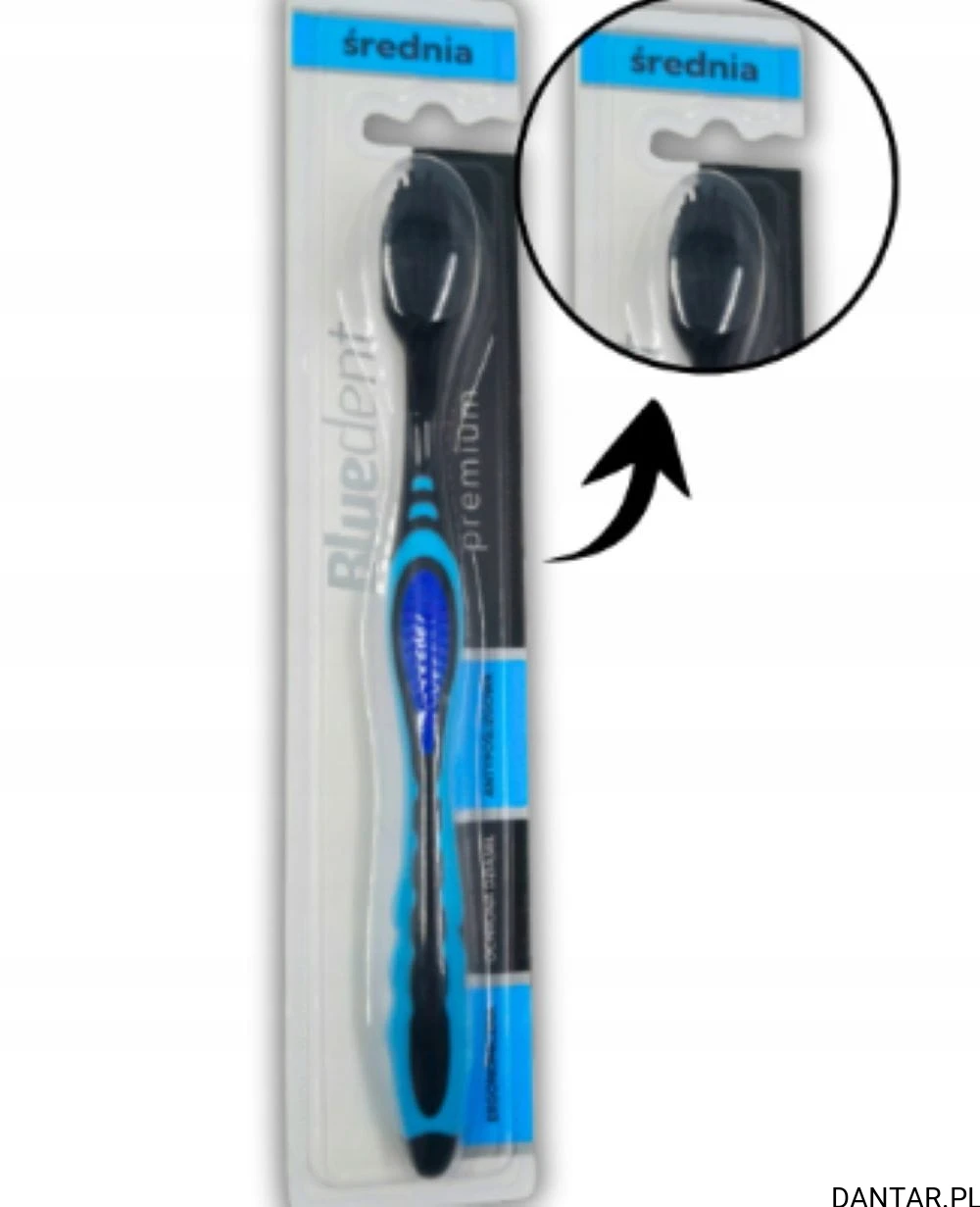 Bluedent Premium to wysokiej jakości szczoteczka do zębów o średniej twardości włosia, stworzona z myślą o osobach, które oczekują skutecznego czyszczenia i maksymalnego komfortu podczas codziennej pielęgnacji. Precyzyjnie zaprojektowane włosie efektywnie usuwa płytkę nazębną, dociera do trudno dostępnych miejsc i wspiera zdrowie dziąseł, zapewniając świeżość oraz czystość jamy ustnej przez cały dzień.