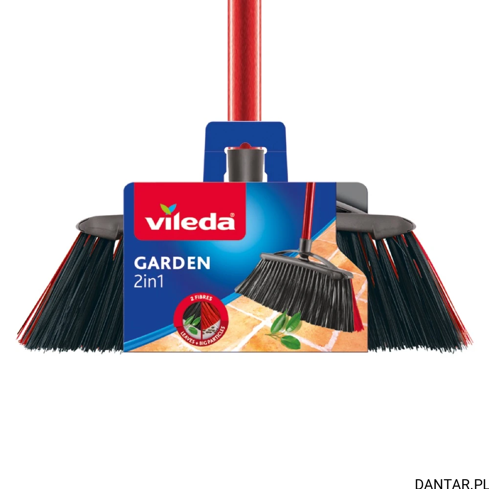 Szczotka zewnętrzna Vileda Garden 2w1 z kijem — szybsze zamiatanie tarasu i kostki