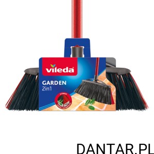 Szczotka zewnętrzna Vileda Garden 2w1 z kijem usprawnia zamiatanie tarasów, kostki i podjazdów dzięki dwóm strefom włosia.