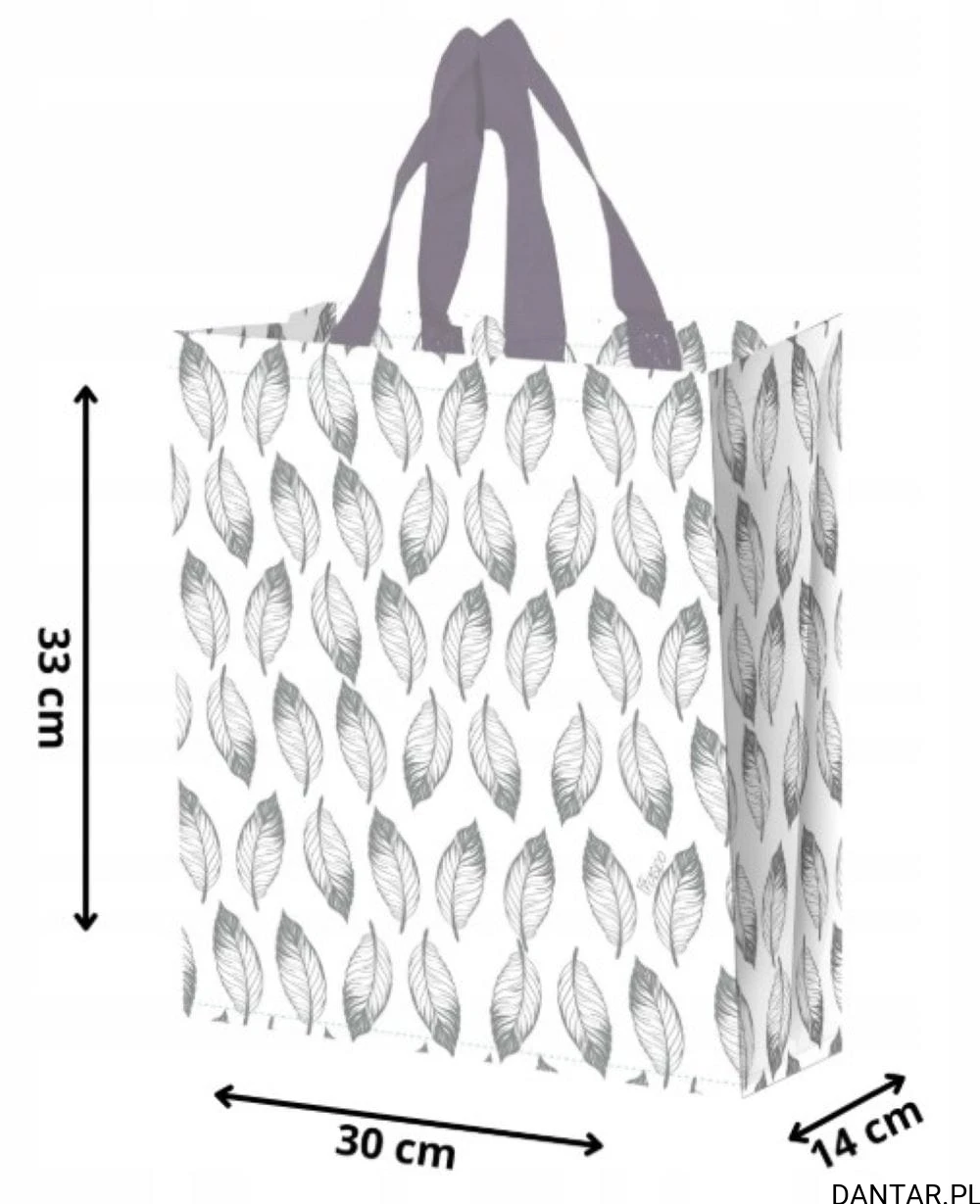 Praktyczna torba na zakupy z wysokiej jakości polipropylenu, idealna do przenoszenia produktów spożywczych i codziennych zakupów. Torba o wymiarach 30 cm szerokości, 14 cm głębokości i 33 cm wysokości oferuje pojemność 14 litrów, co pozwala na wygodne zapakowanie różnorodnych produktów. Lekka, ale wytrzymała dzięki gramaturze materiału około 100 gsm, z dodatkową laminacją dla zwiększenia odporności na przetarcia i wilgoć. Doskonała do używania wielokrotnie, wspiera redukcję zużycia plastiku i jest łatwa do przechowywania. Idealna dla osób szukających funkcjonalnej, ekologicznej torby zakupowej, która łączy wygodę z trwałością.