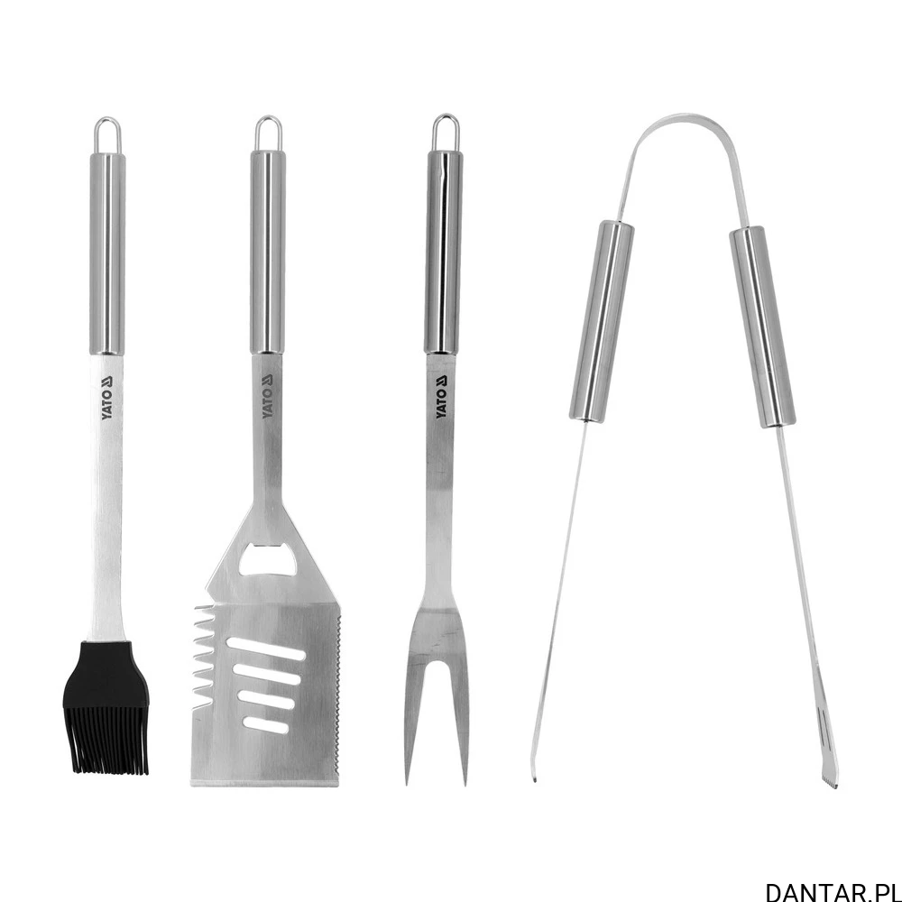 Zestaw do grillowania Yato 4 elementy ze stali nierdzewnej 430. Cena za komplet. Widelec, szczypce, łopatka i pędzelek do obsługi grilla.