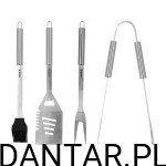 - 4 elementy w komplecie - widelec, szczypce, łopatka i pędzelek do najczęstszych zadań przy grillu.