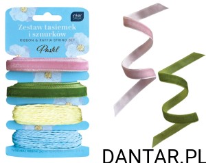 Zestaw dekoracyjnych tasiemek i sznurków w pastelowych kolorach Interdruk. Opakowanie zawiera 4 sztuki wstążek i sznurków do dekoracji. Cena za opakowanie 4 szt.