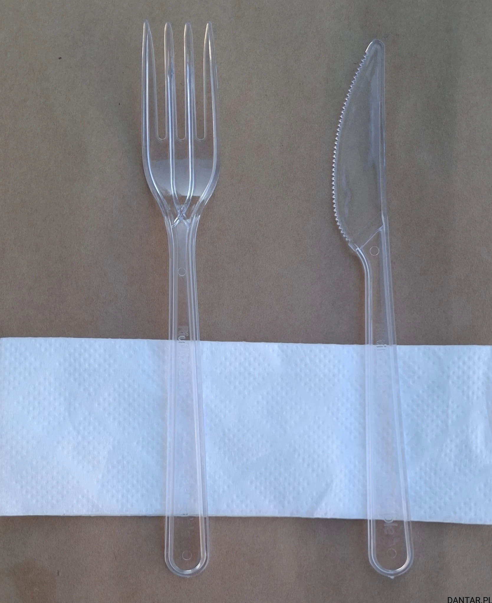 Zestaw transparentnych sztućców widelec+nóż+serwetka a250 10013